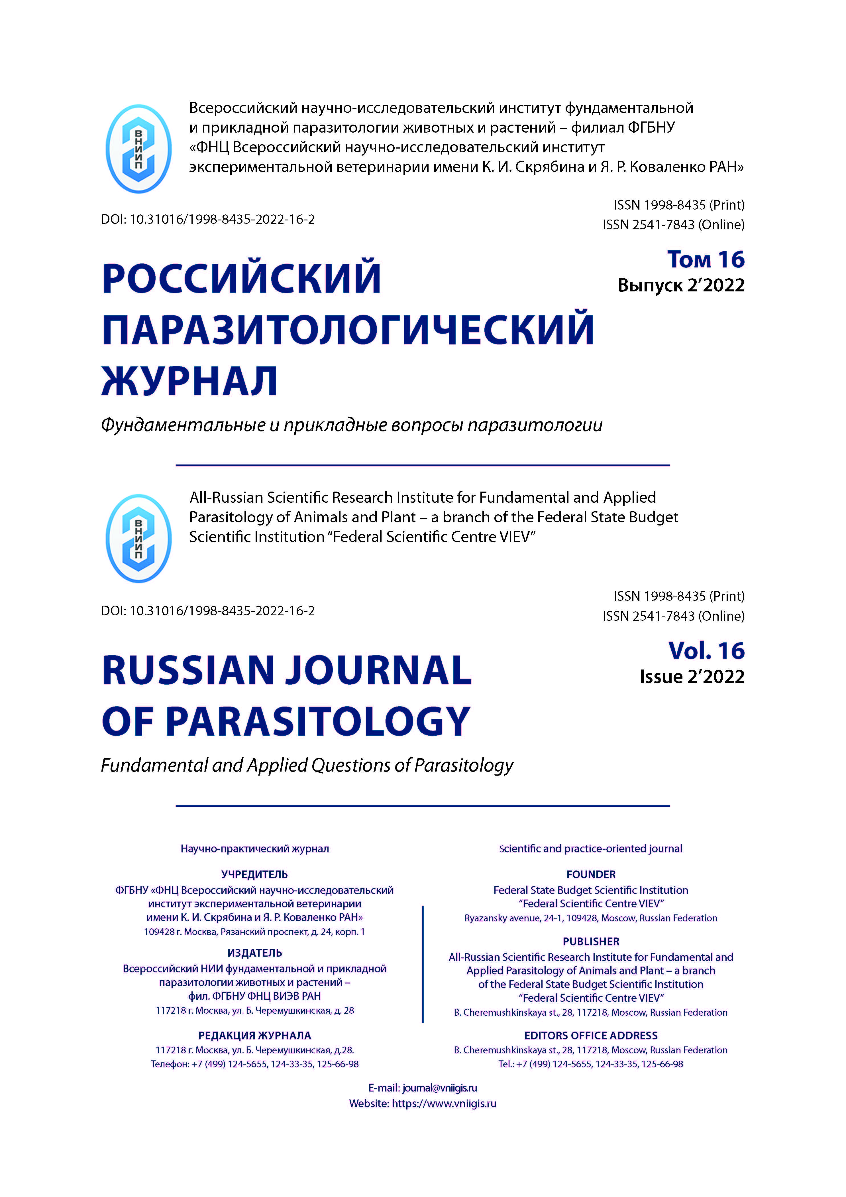 Российский паразитологический журнал 2022 - выпуск 2 квартала (PDF)